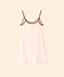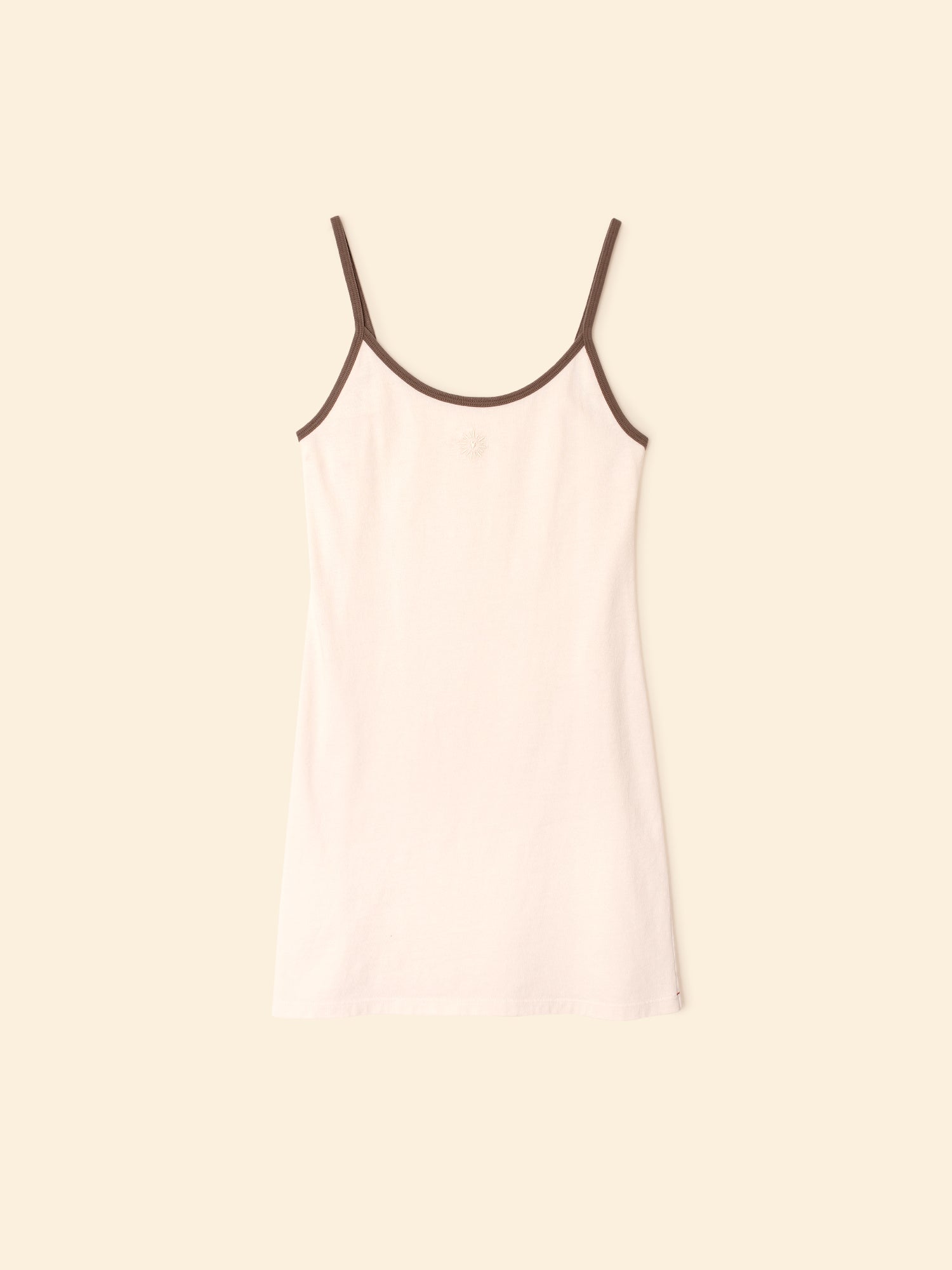 French allure meets California ease. Lauren is made in our ultra-soft cotton jersey. This easy slip dress features contrast color binding and Lea’s signature heart embroidery at the neck.