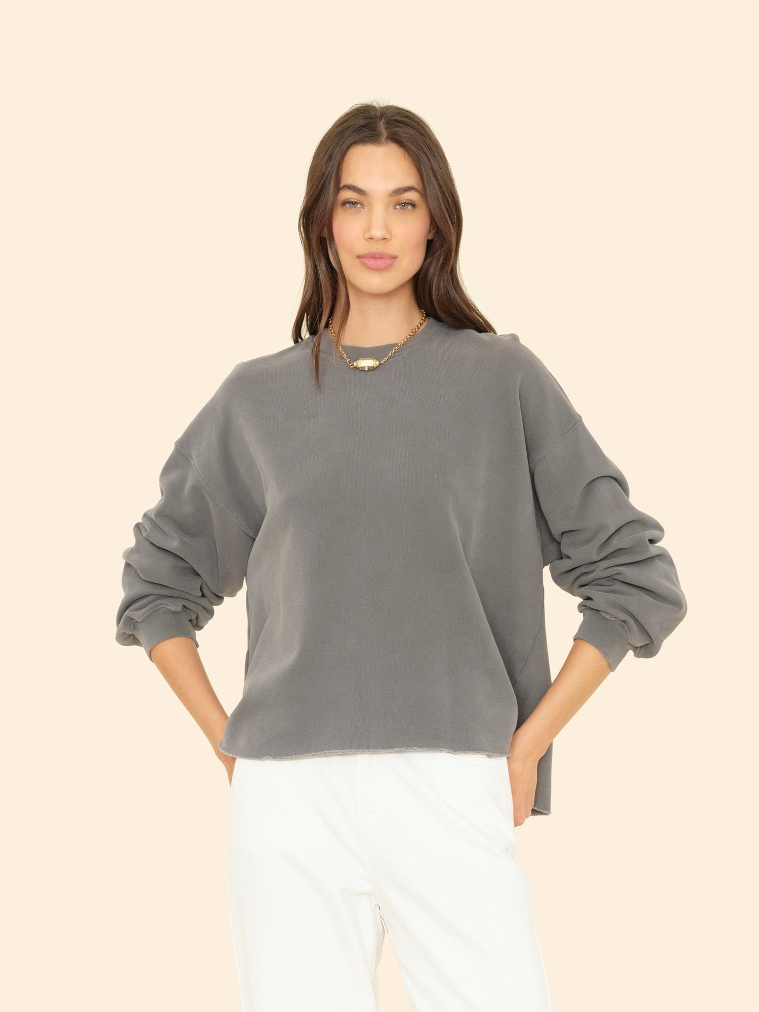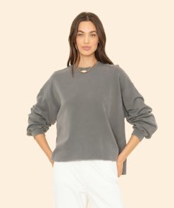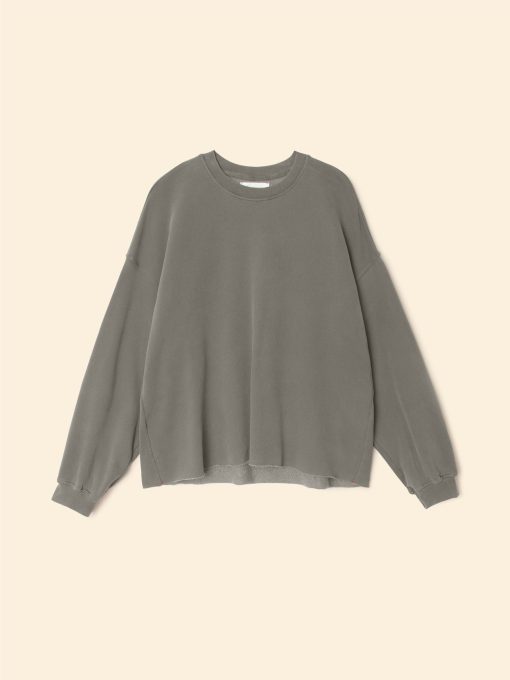 Make a (Cozy) Statement. Honor is updated this season in our organic mineral wash terry utilizing an eco-friendly dyeing process with natural dyes. This timeless sweatshirt has full length sleeves and a slightly cropped raw edge hem.