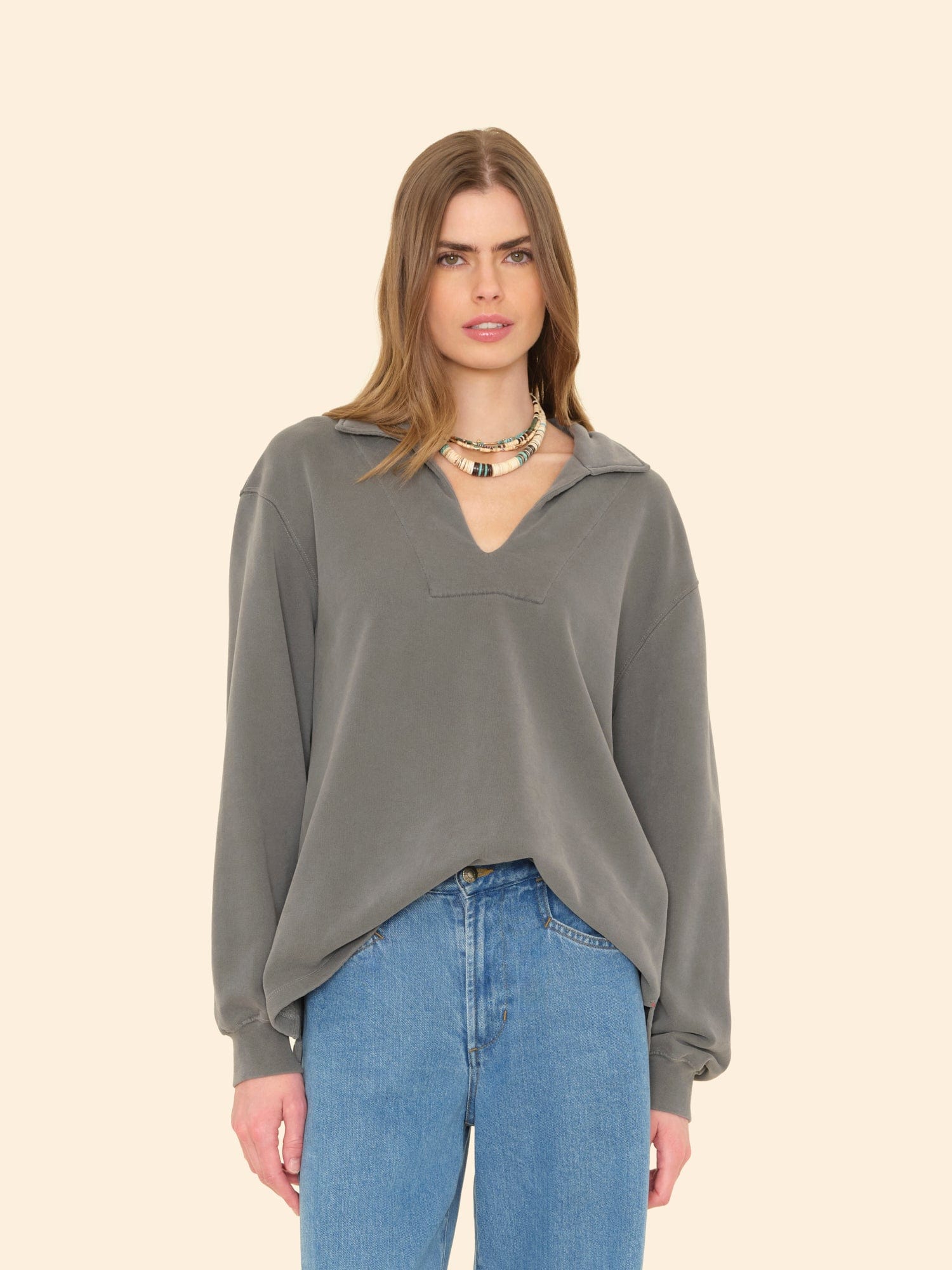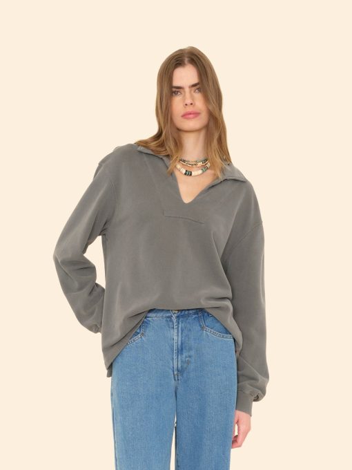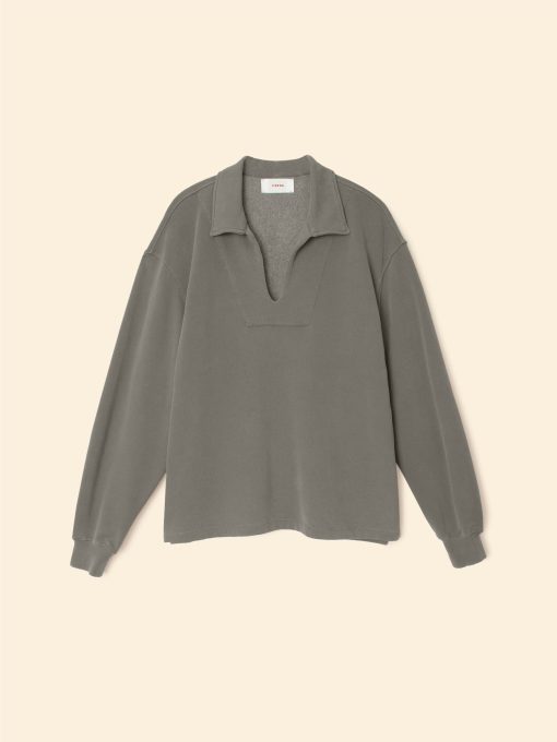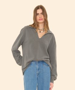 Make a (Cozy) Statement. Trey is new this season in our organic mineral wash terry, utilizing an eco-friendly dyeing process with natural dyes. This pullover sweatshirt features a high collar, split neck with V-yoke, and a clean finished high low hem with side slits.