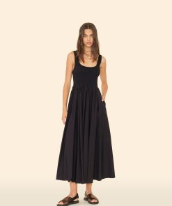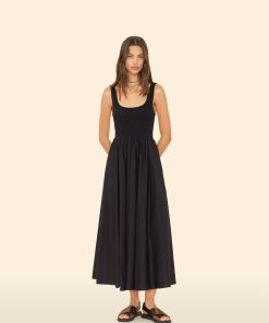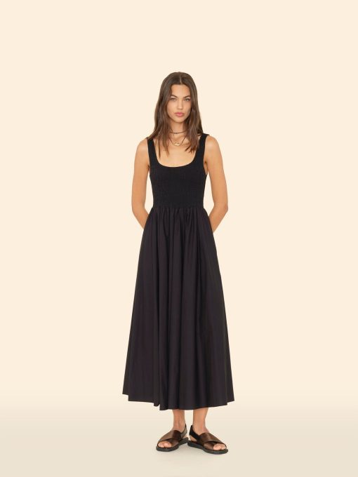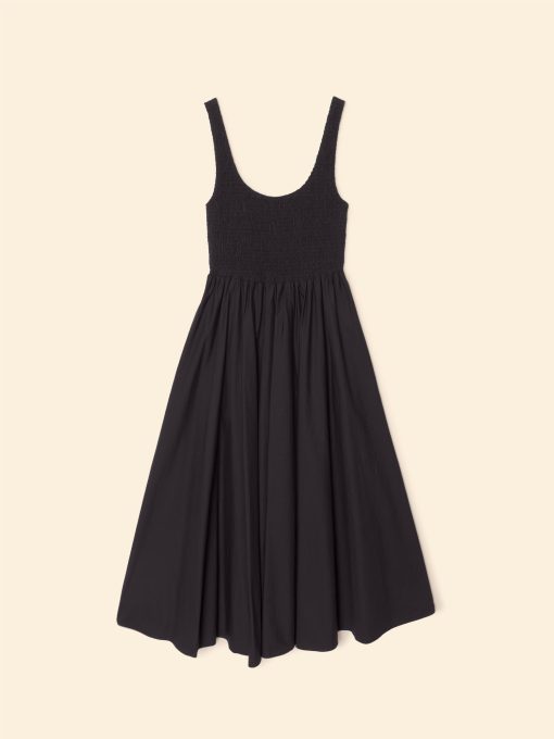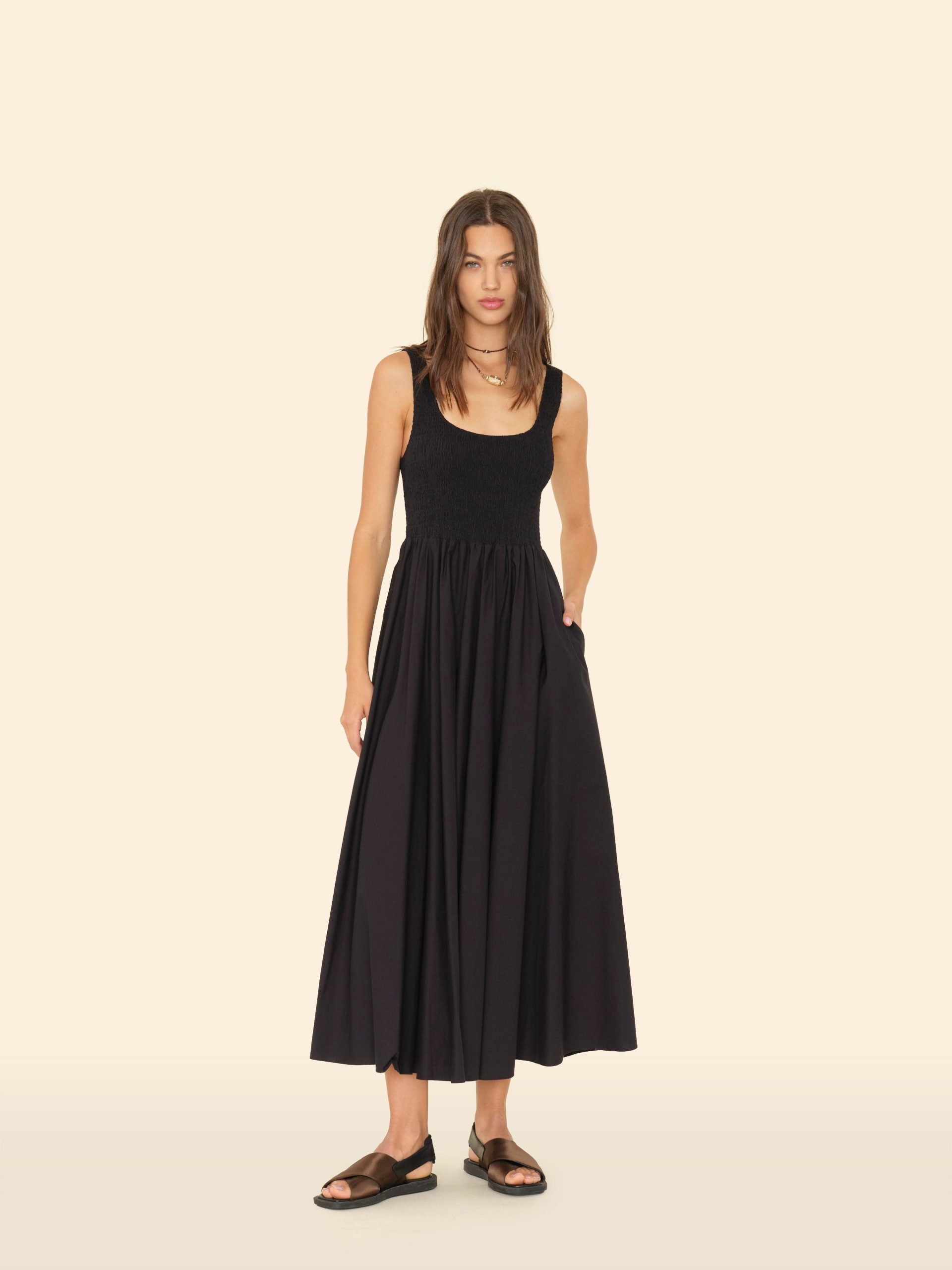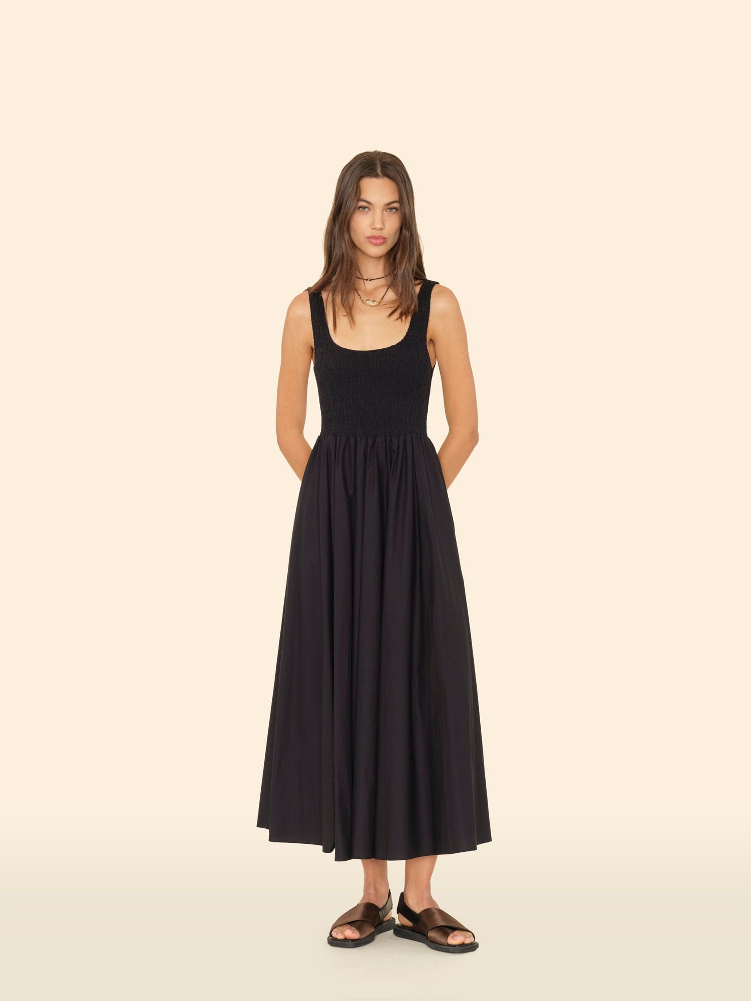 Pretty Please. Florence is made in our new crisp paper poplin with a refined feel. This sleeveless midi sundress features a square neck, smocked bodice, and side seam pockets.