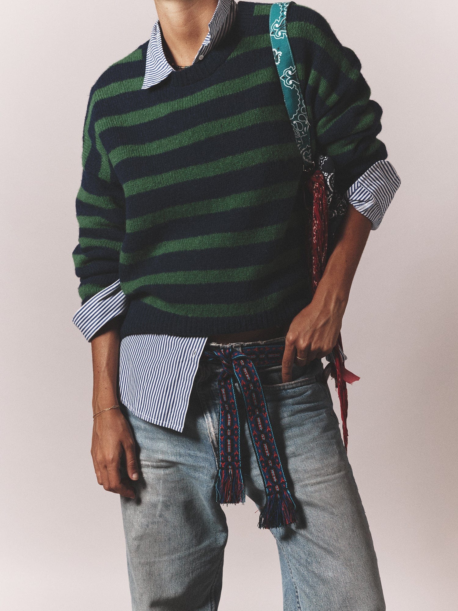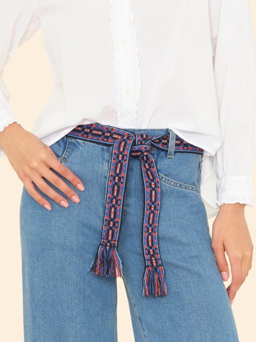 Above the Belt. Rios is a vintage-inspired soft-woven jacquard belt with a frayed edge. Pair back with our Legend Pant or Boden Dress for a fun and colorful touch.