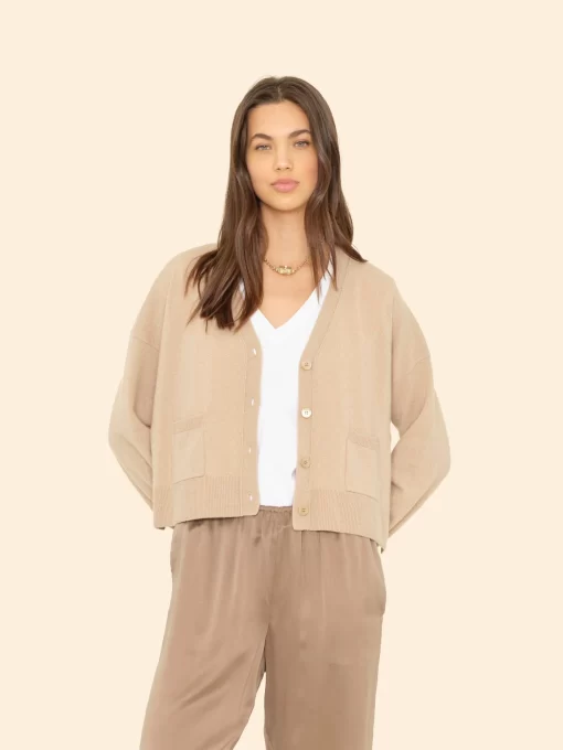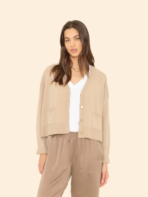 Soft spot. Trudie is back this season in our luxe, ultra-soft cashmere. Trudie is a cropped cardigan with a deep V-neck, two front patch pockets, and hem side slits.