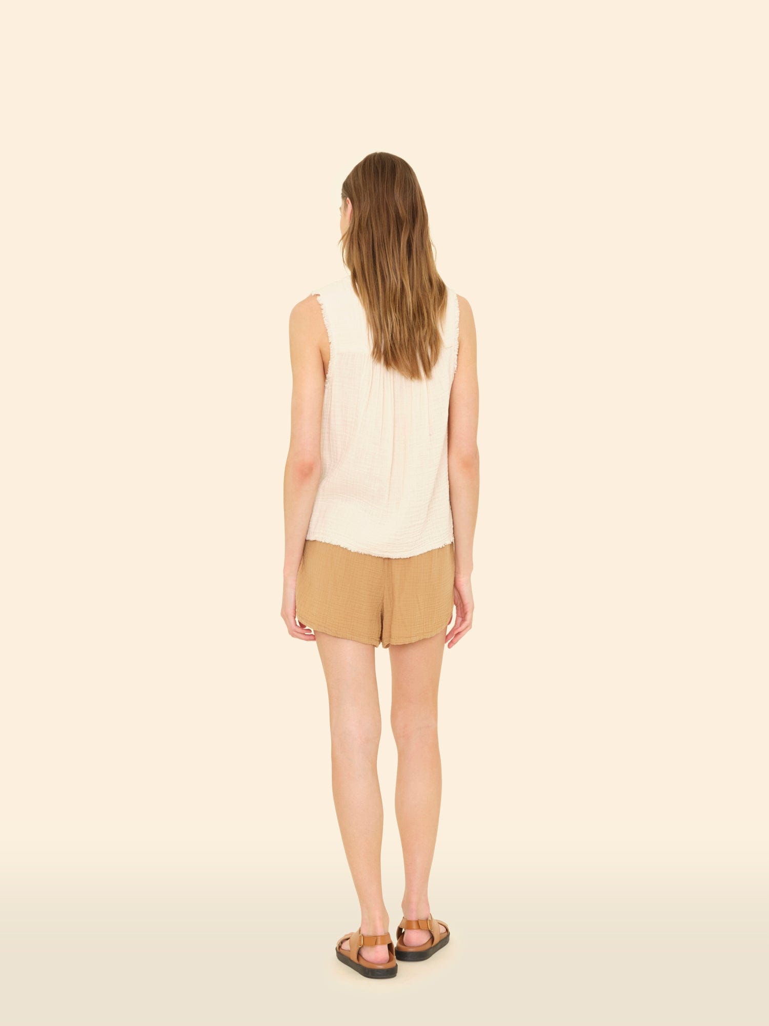 Short and Sweet. Starla is made in our washed double faced cotton gauze for a soft, gently crinkled feel. Starla is a Dolphin short with an elasticized drawstring waist and side seam pockets.