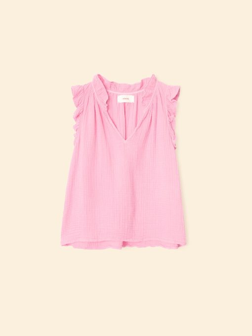 Ruffle Up. Bex is updated this season in our washed double faced cotton gauze for a soft, gently crinkled feel. This bestselling popover top has a deep V-neck, ruffle detailing and shirring throughout.