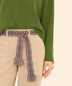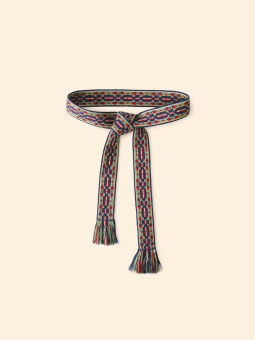 Above the Belt. Rios is a vintage-inspired soft-woven jacquard belt with a frayed edge. Pair back with our Legend Pant or Boden Dress for a fun and colorful touch.