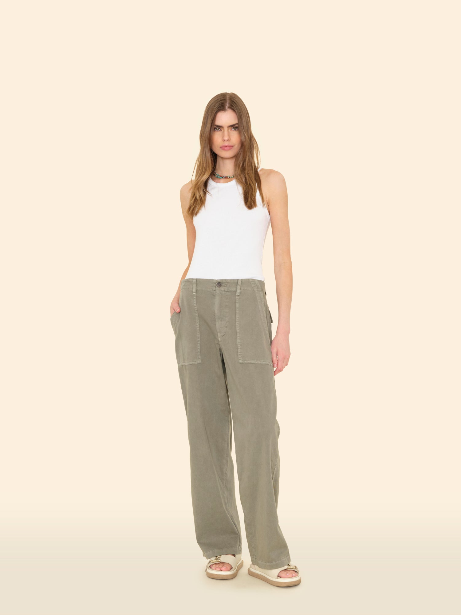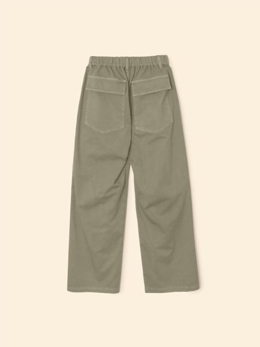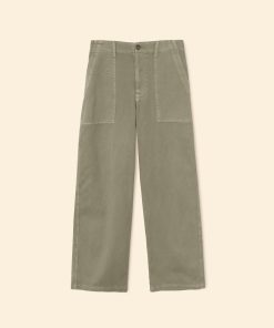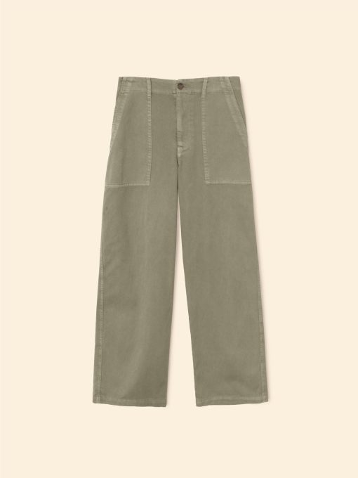 Far and Wide. Morleigh is back this season in our vintage washed cotton twill. This 5-pocket utility pant features a wide leg, button closure with zipper fly, and back flap pockets.