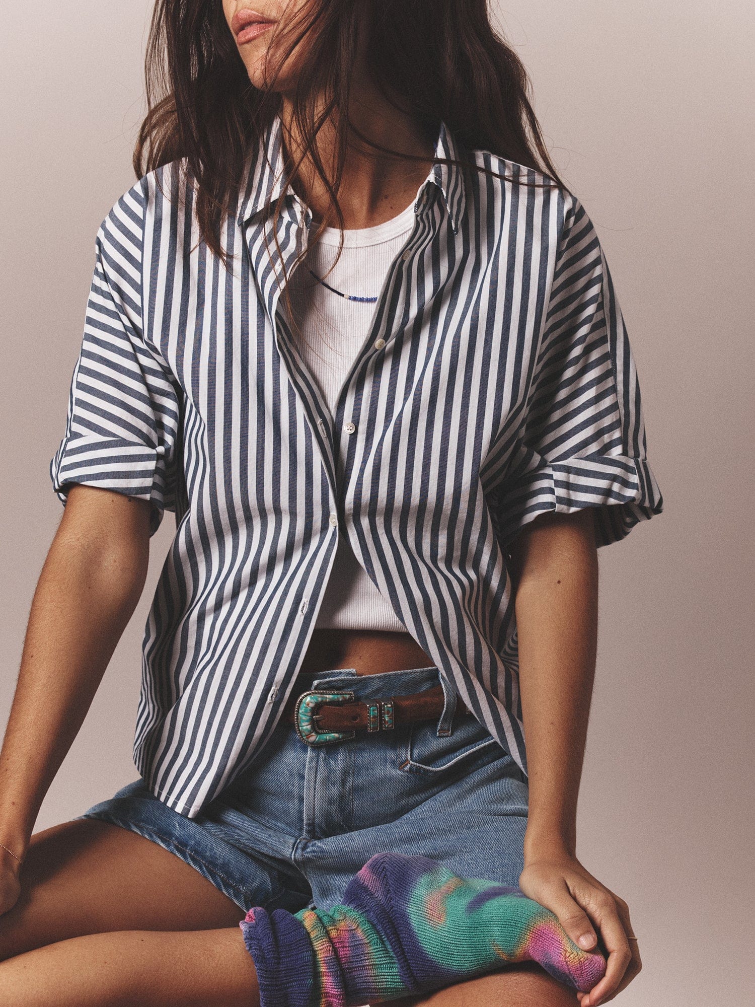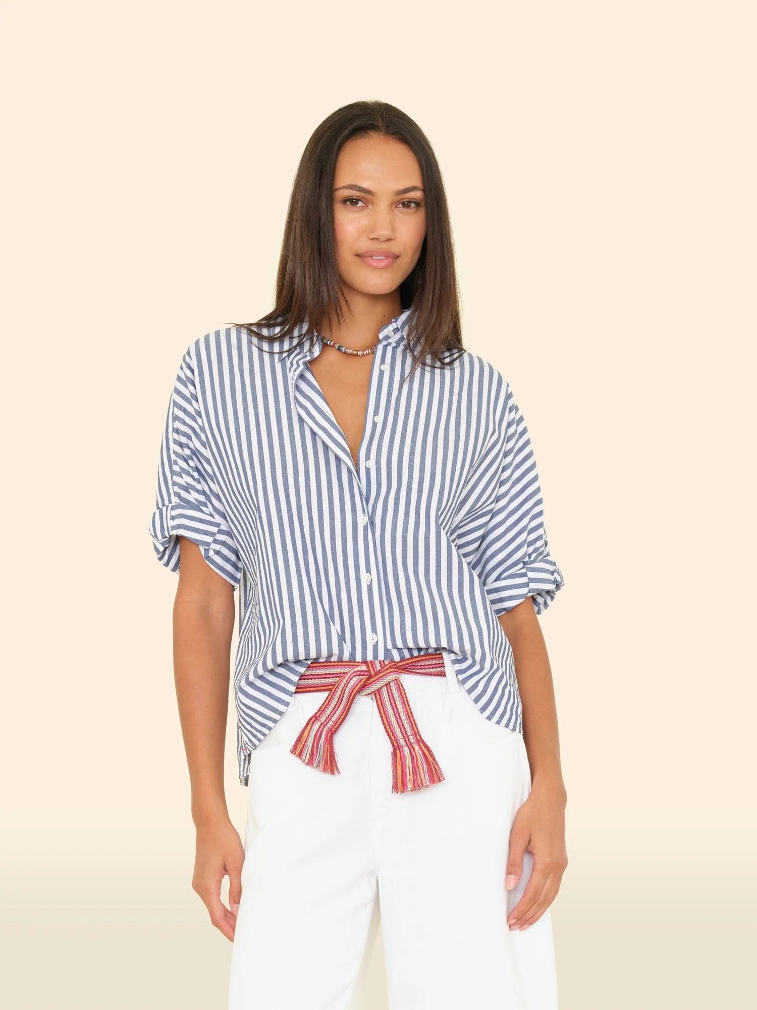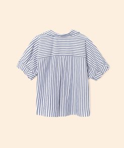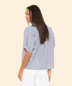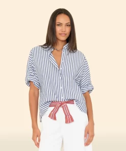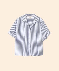 Striped Delight. Teddy is updated this season in our crisp cotton stripe. Teddy is an easy, cropped button-front shirt with a boxy fit, rolled sleeves, and back yoke.