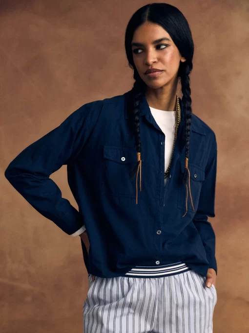 Easy does it. Archie is new this season in our classic lightweight woven cotton poplin for a lived-in look and feel. This button-front shirt features a boxy fit, two front patch pockets, and a back yoke.