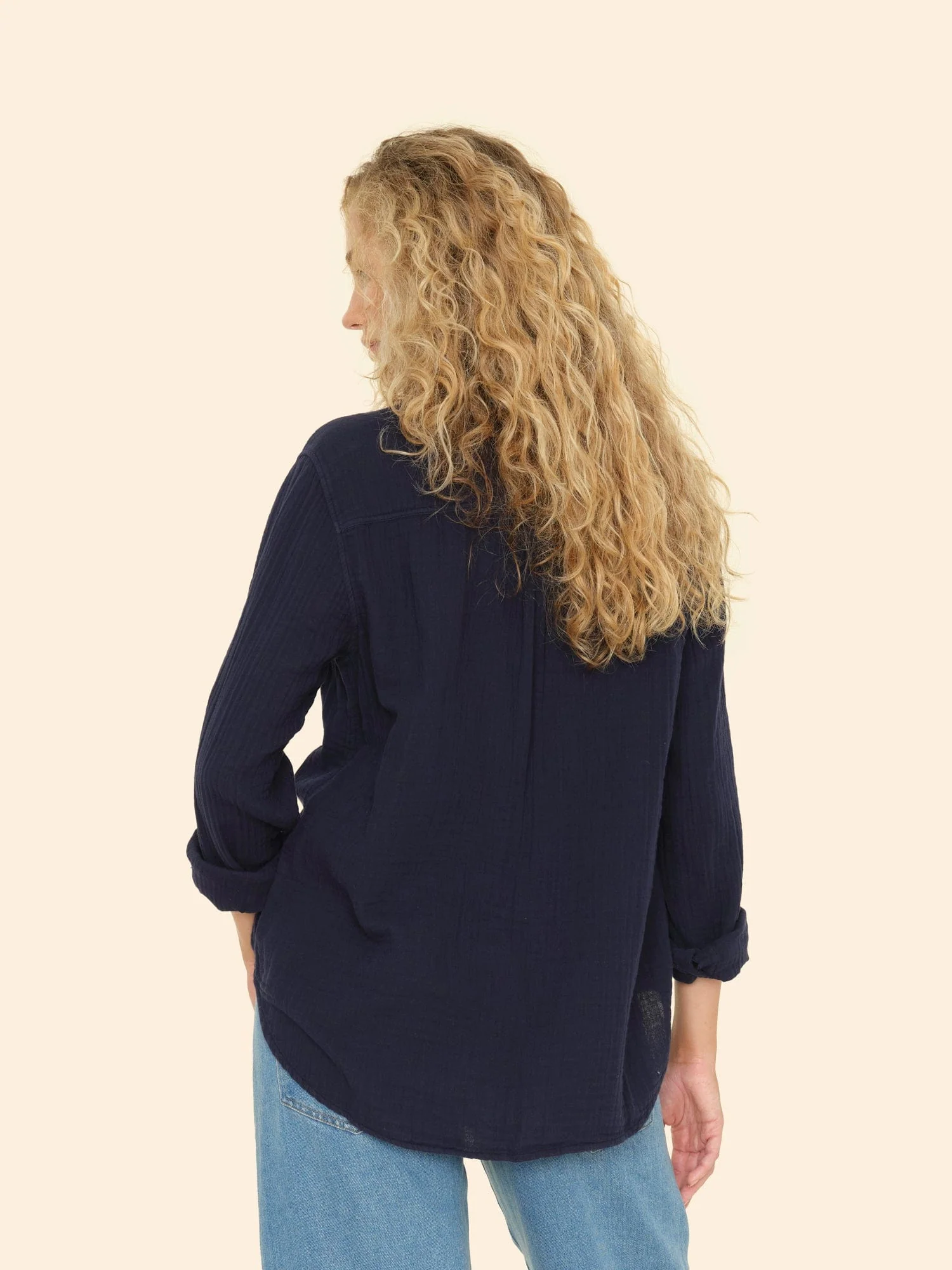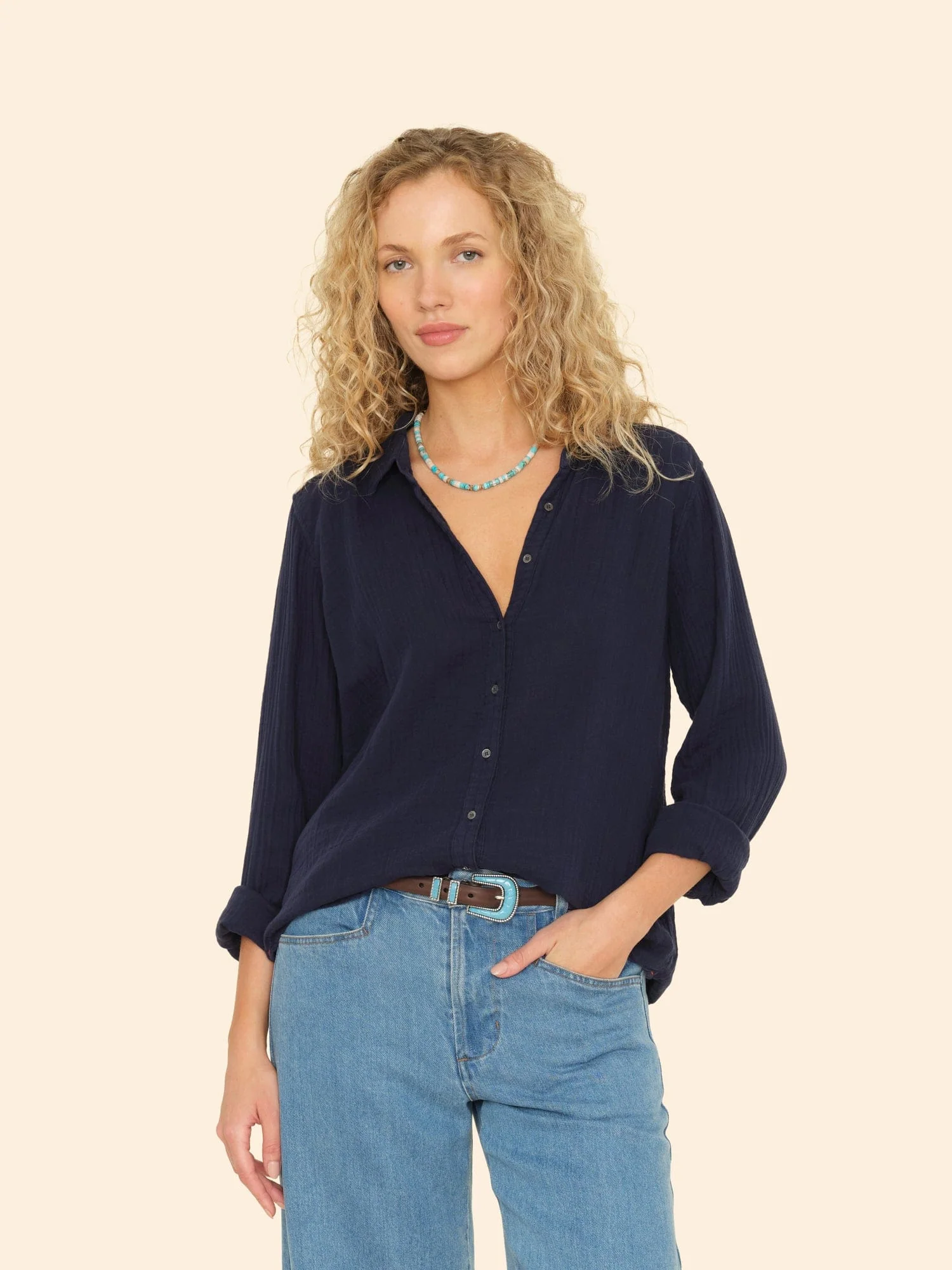 Bare Necessities. Scout is made in our washed double faced cotton gauze for a soft, gently crinkled feel. This lightweight button-front shirt has a shirttail hem and box pleated back yoke.