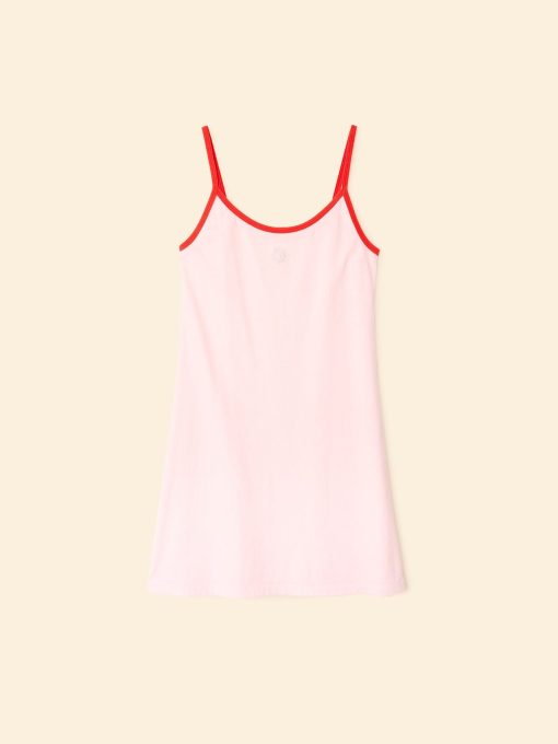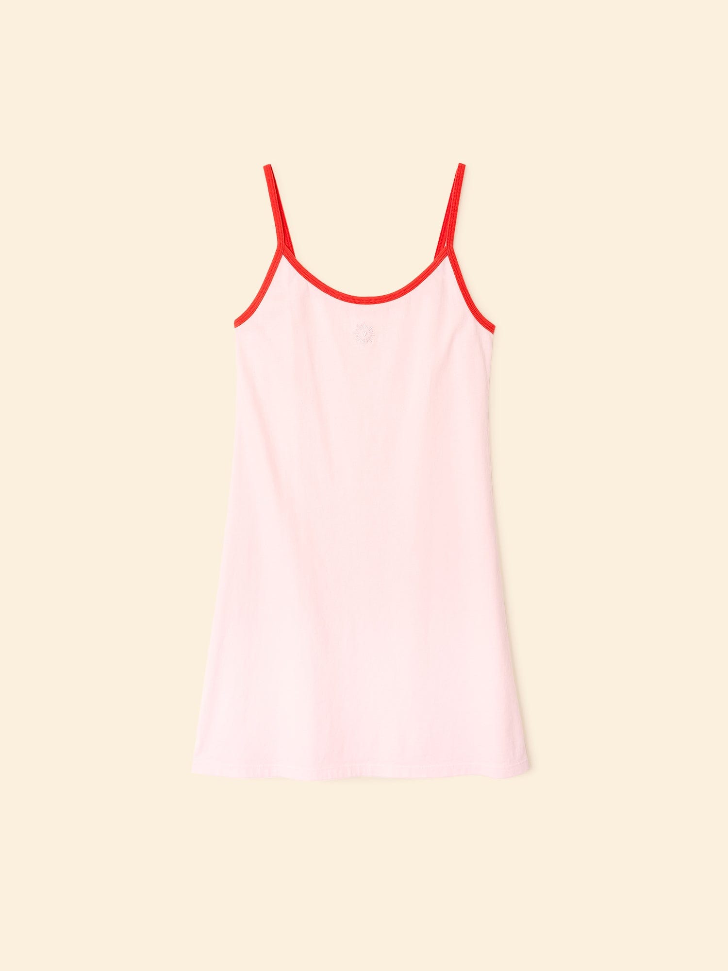 French allure meets California ease. Lauren is made in our ultra-soft cotton jersey. This easy slip dress features contrast color binding and Lea’s signature heart embroidery at the neck.