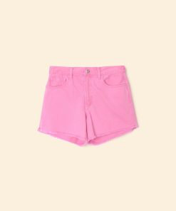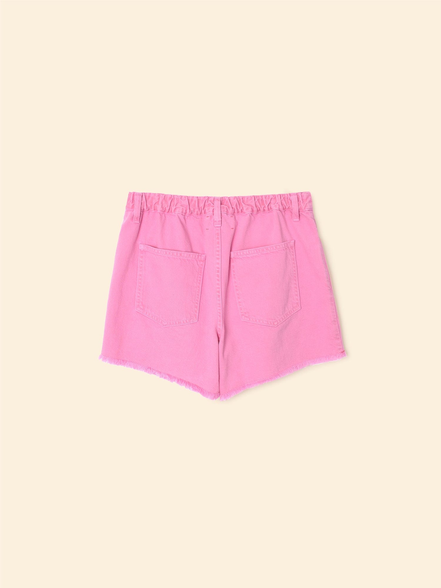 Forever Denim. Hailey is new this season in our mid-weight recycled blend denim. Hailey is a five-pocket short with an elastic back waist and raw edge hem.