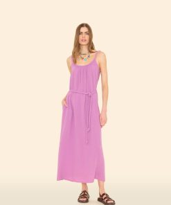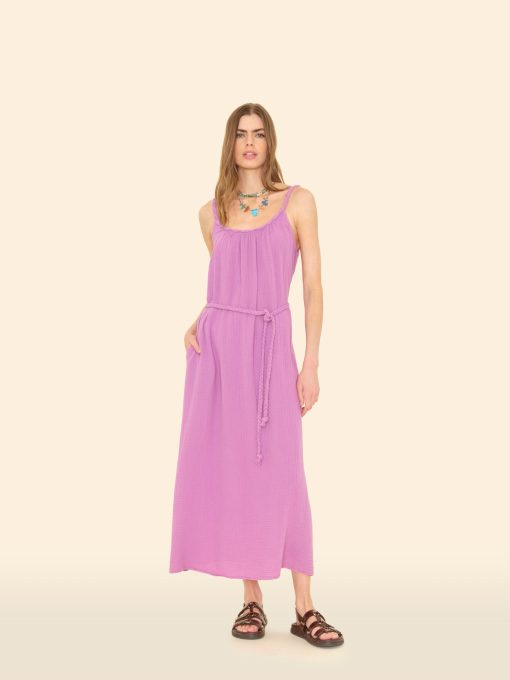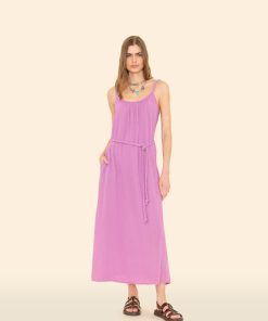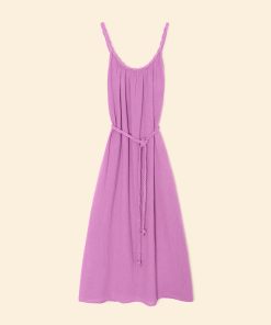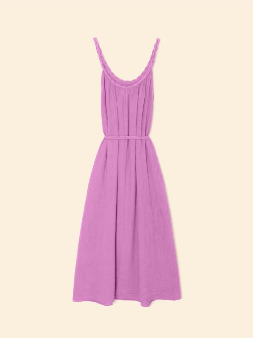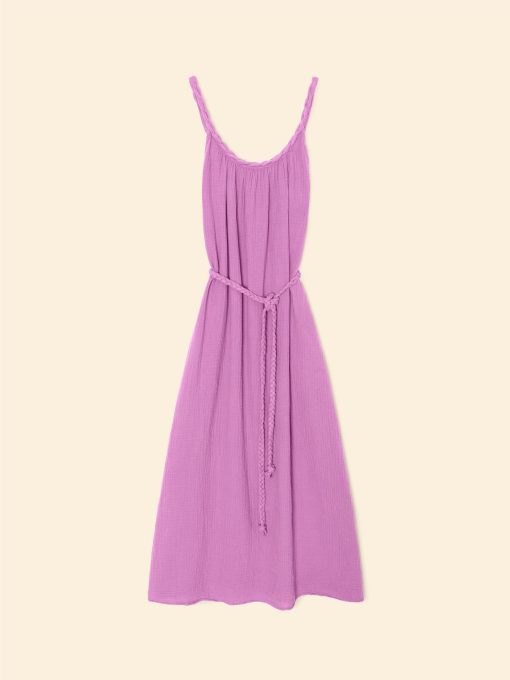Easy Breezy. Braiden is new this season in our washed double faced cotton gauze for a soft, gently crinkled feel. Braiden is a flowy tank midi dress with a twisted braid neck and straps, side seam pockets, and a braided self-tie belt.
