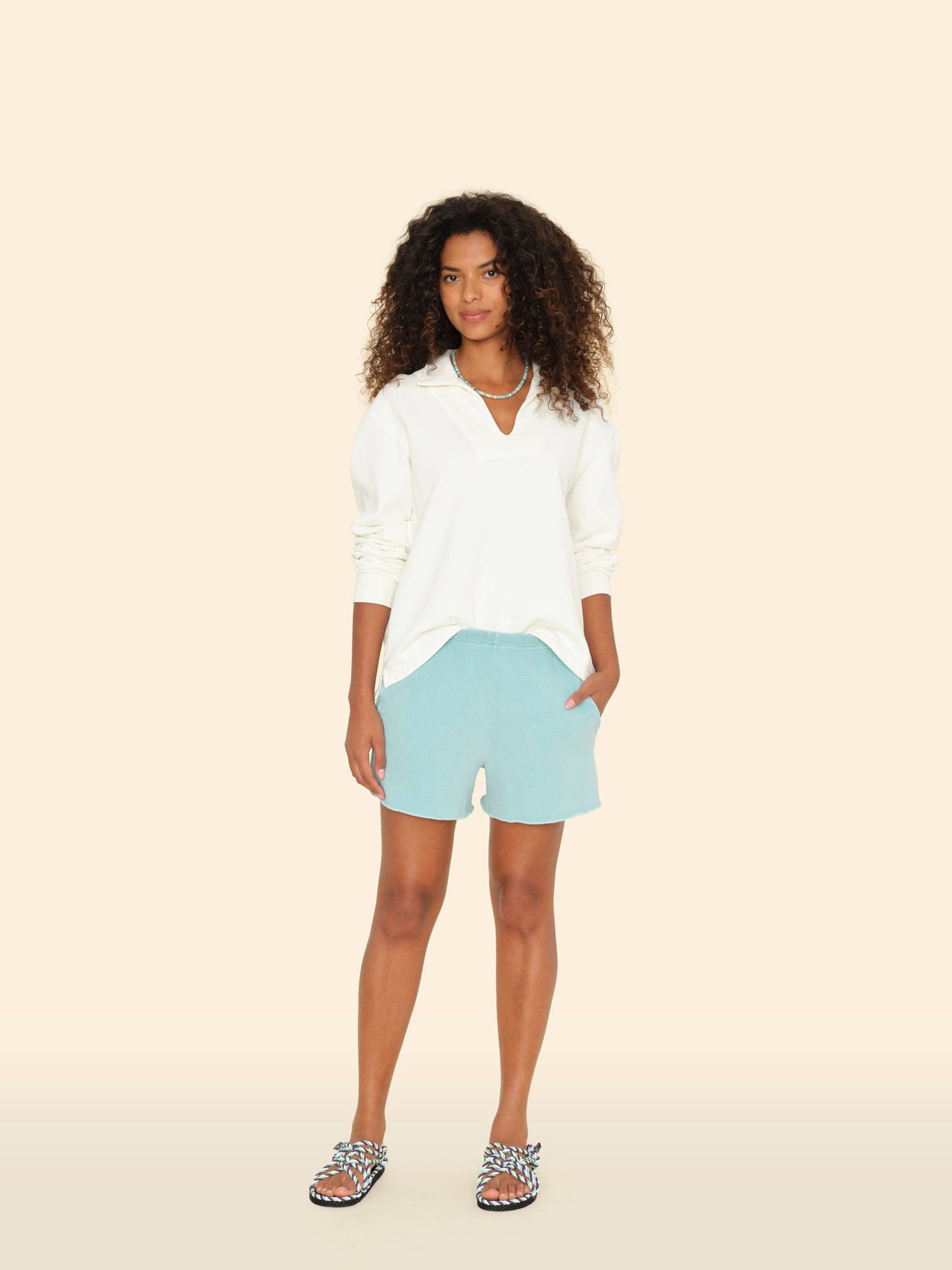 Make a (Cozy) Statement. Shawn is new this season in our organic mineral wash terry, utilizing an eco-friendly dyeing process with natural dyes. Shawn has an elasticized drawstring waist, side seam pockets, back left patch pocket, and a raw edge hem.