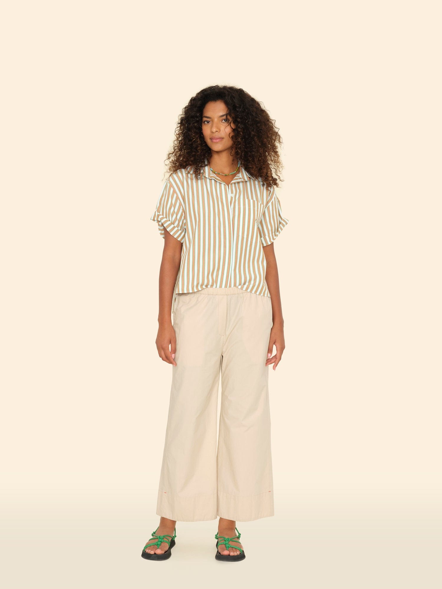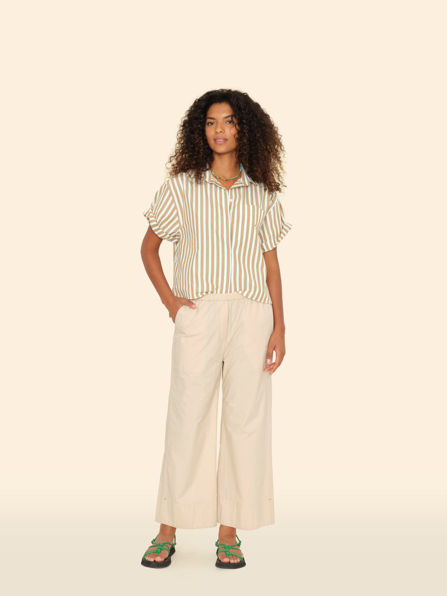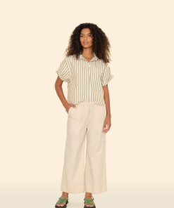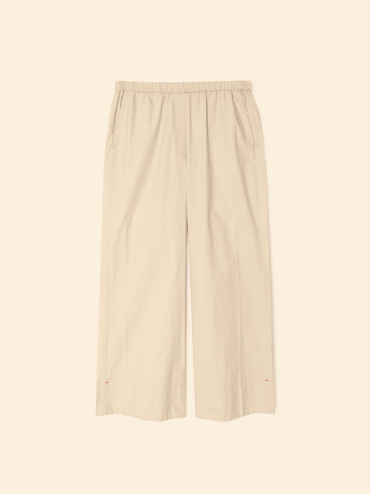 Easy does it. Butler is made in our new crisp paper poplin with a refined feel. This cropped pant features a wide leg, faux fly, elasticized waist, and side seam pockets.