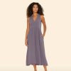 Pretty Please. Davana is new this season in our washed double faced cotton gauze for a soft, gently crinkled feel. This button-front midi dress features a V-neck, ruffle sleeves, side seam pockets, and a flounce ruffle hem.