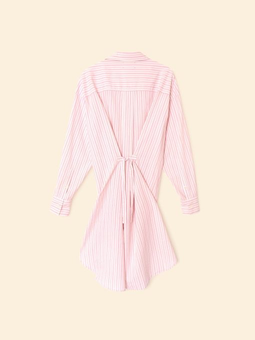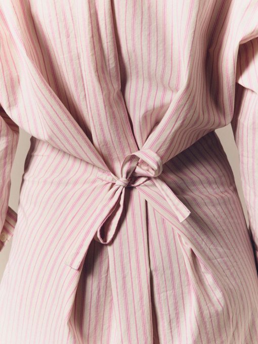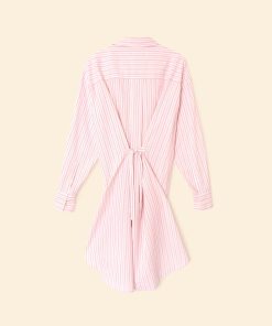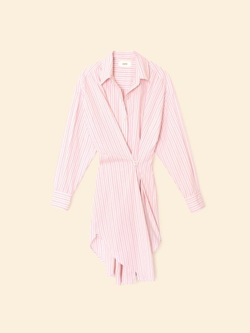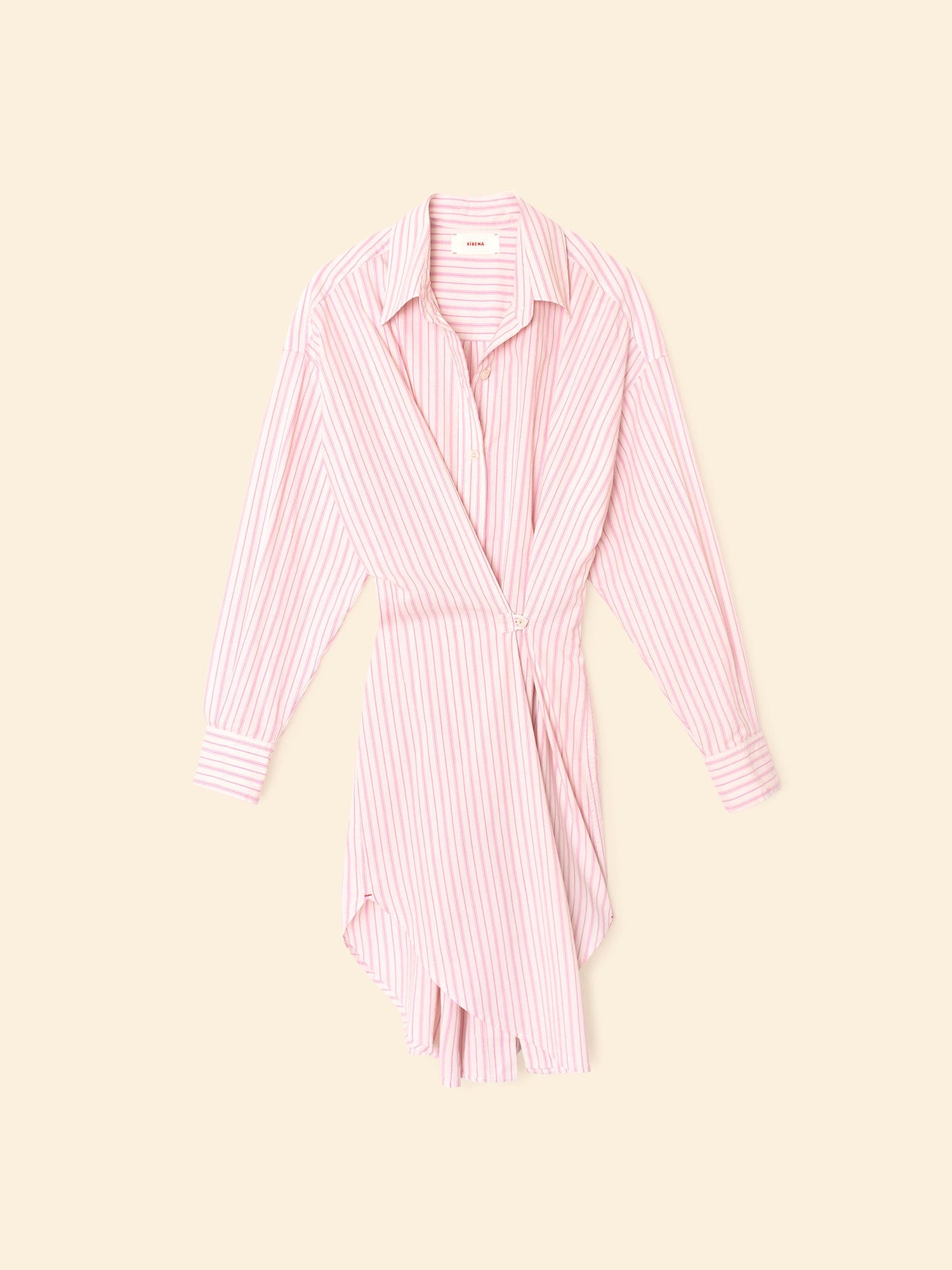 French allure meets California ease. Made in our crisp cotton stripe, Capucine is a versatile asymmetrical side-button shirtdress that can be worn buttoned for a more fitted and polished look or open for a relaxed feel. This shirtdress also features ties on the back to create a fitted silhouette.