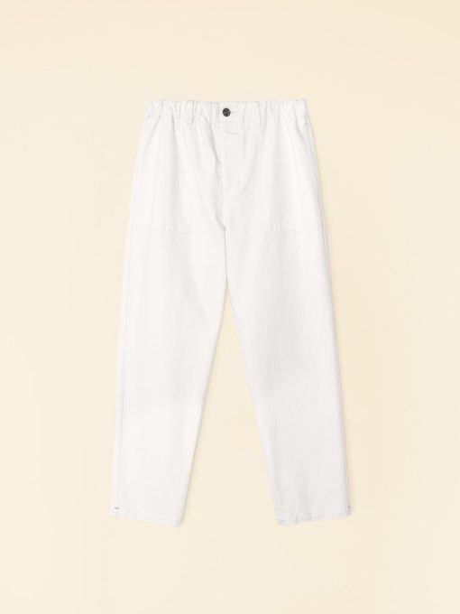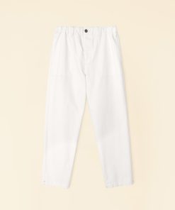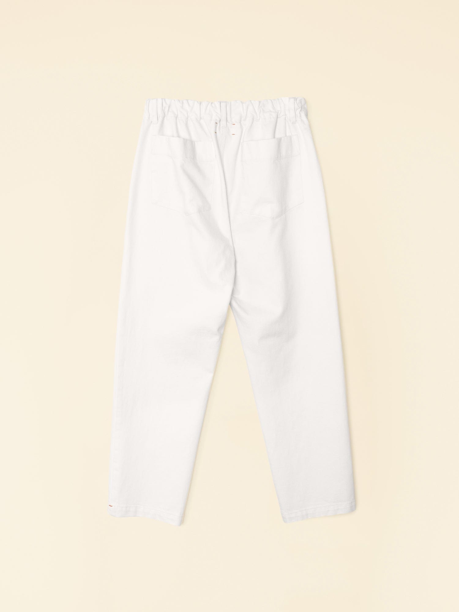 Forever Denim. Mercer is back this season in our mid-weight recycled blend denim. Mercer has a button fly, elasticized waist, slight drop crotch, front patch pockets, and back pockets with button closures.