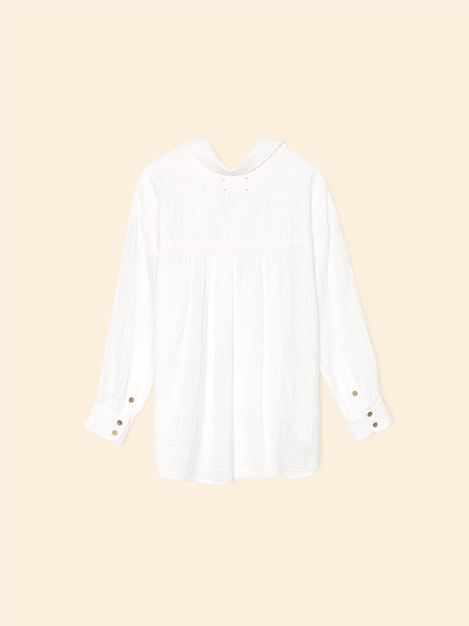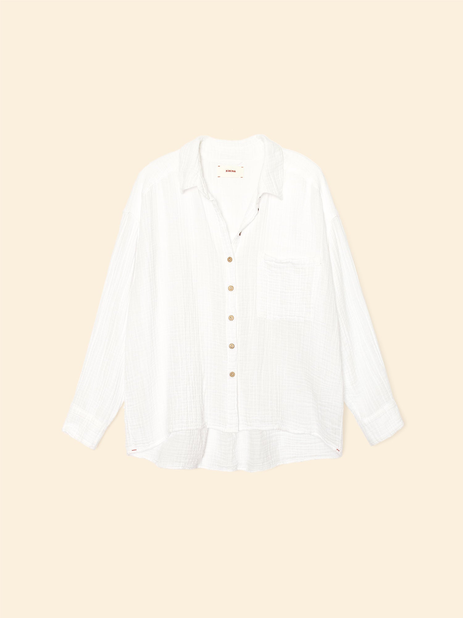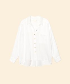 Vacation Mode. Tyler is made in our washed double faced cotton gauze for a soft, gently crinkled feel. This lightweight button-front shirt has a relaxed fit, coconut buttons, left chest pocket, and a high low hem.